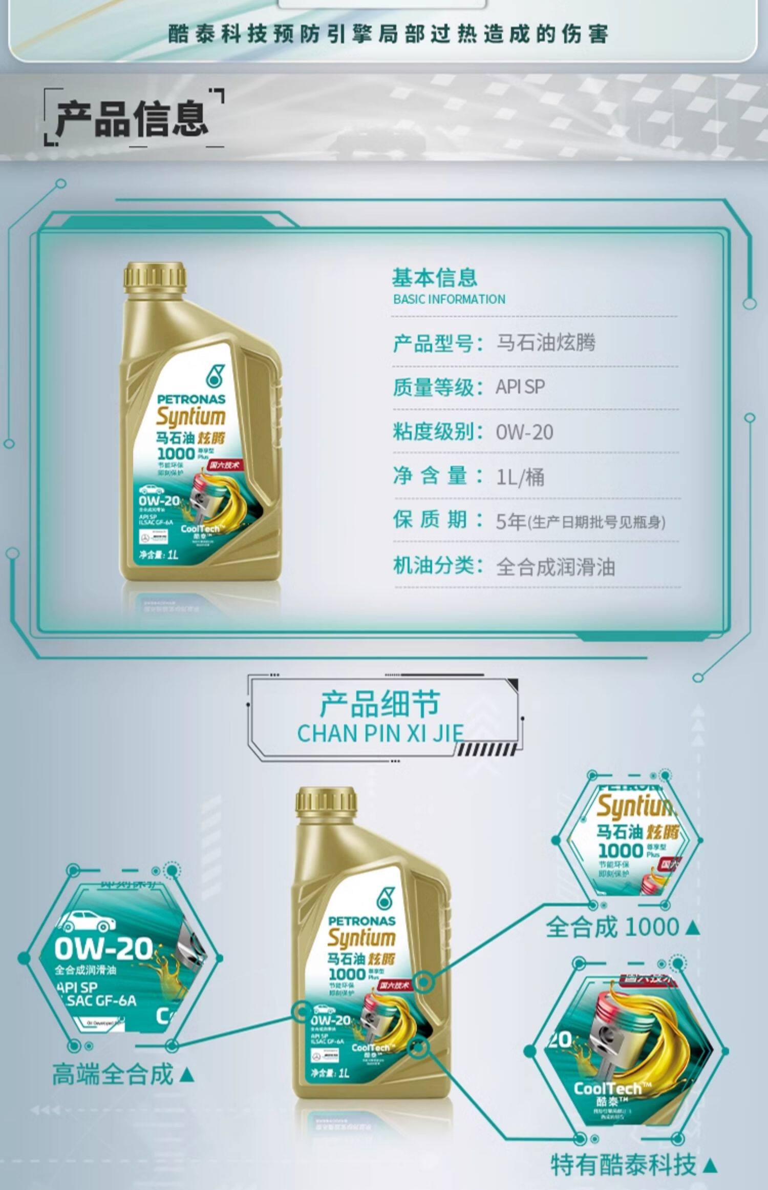 马石油润滑油炫腾 1000 PLUS SP C5 0W-20 1L汽车发动机机油